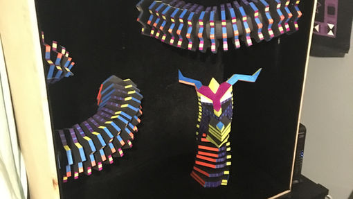 I also decided to intentionally use simultaneous contrast in the neon colors of his body so that he would essentially glow under UV light and animate through color illusion.